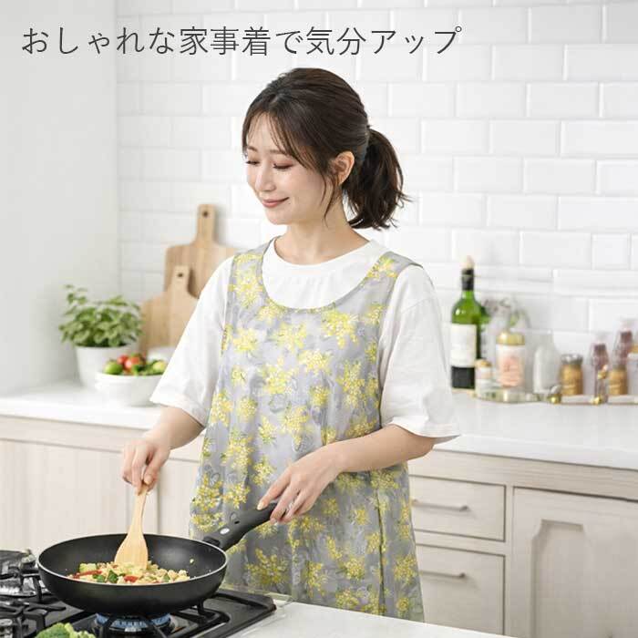 カットジャガード花柄ワンピースエプロン