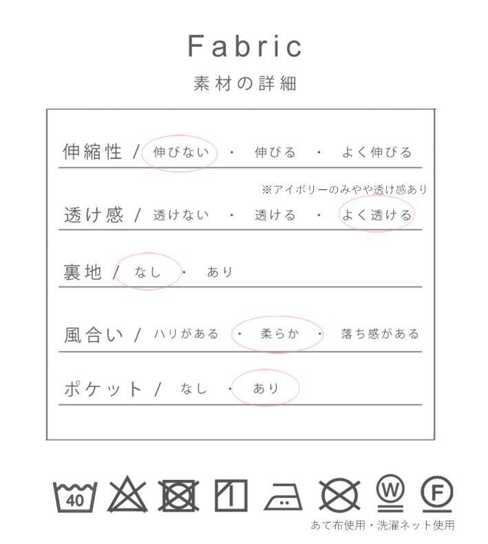 ・洗濯の際は漂白剤、蛍光剤のご使用はお避けください。 変色することがあります。
