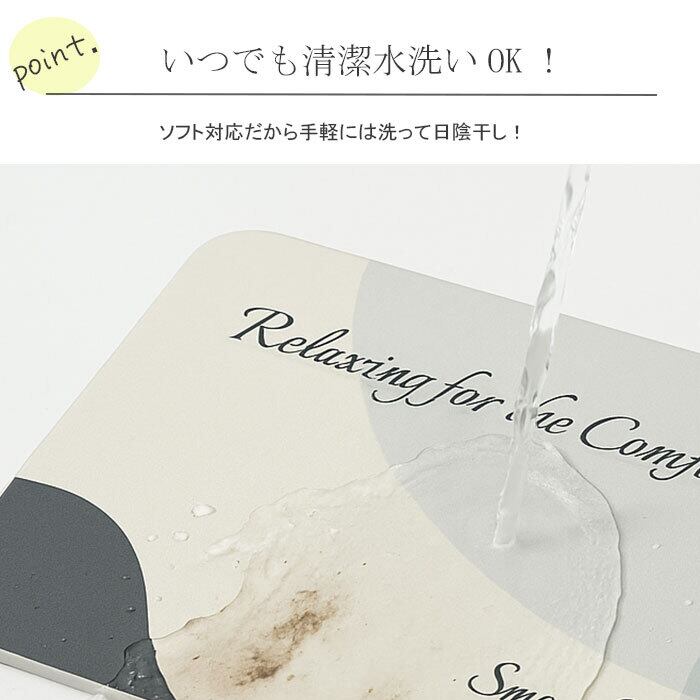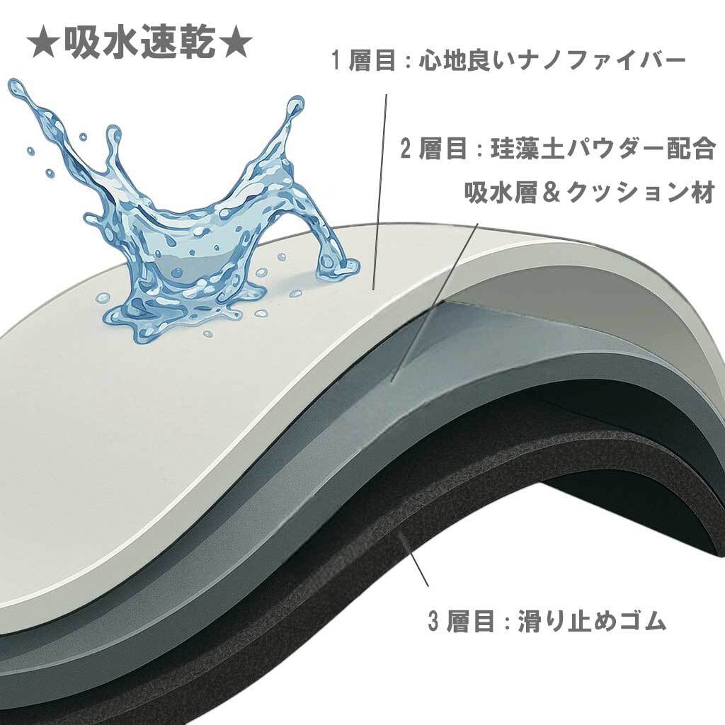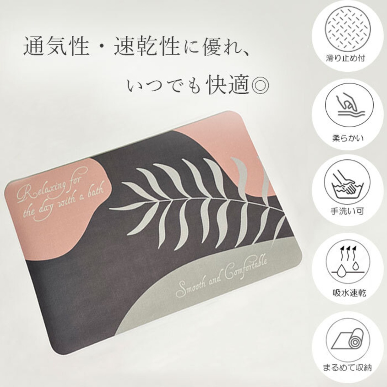 このソフト珪藻土マットは、水分をサッと吸い取る高い吸水性に加え、